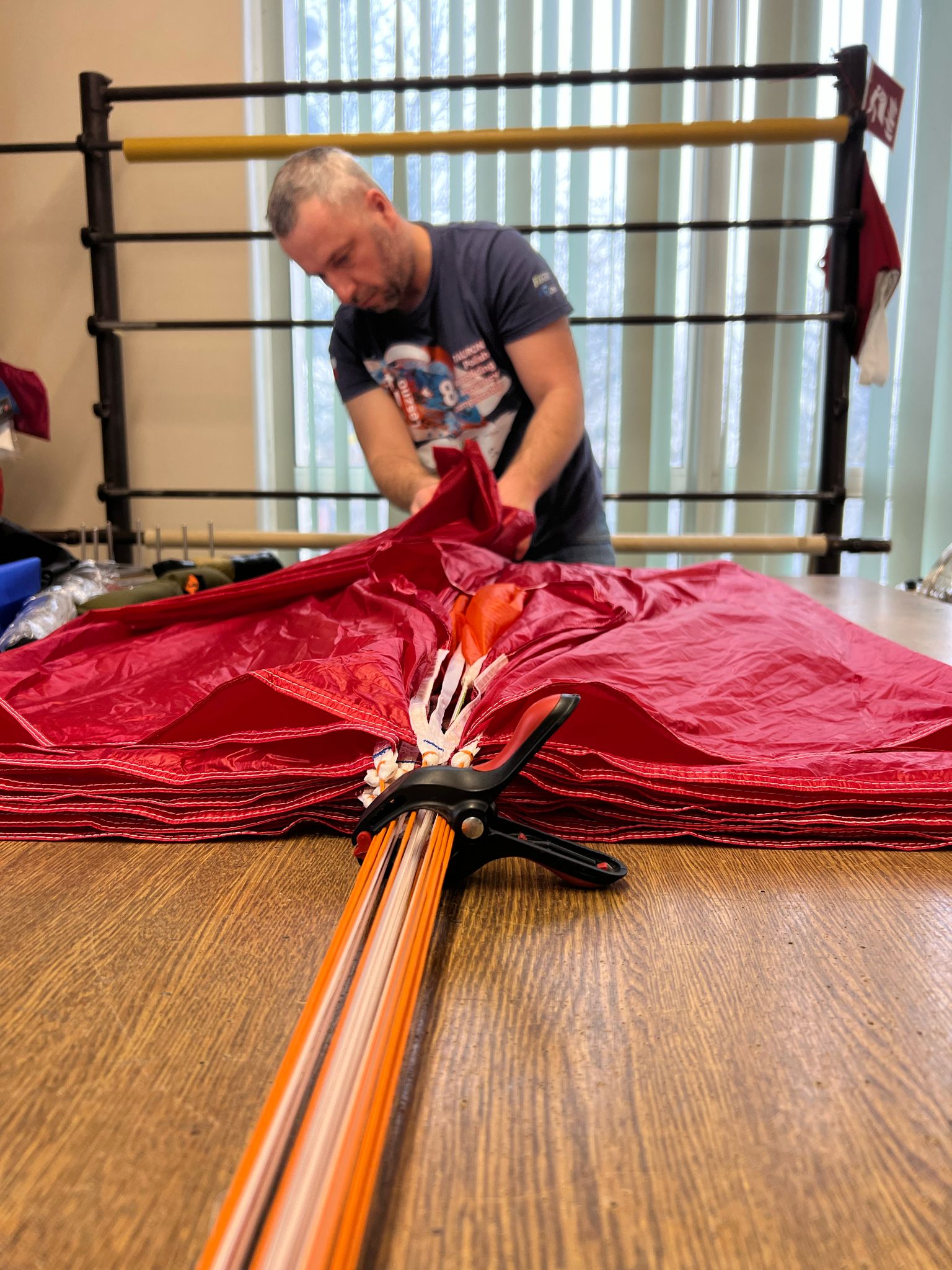 Podczas serwisu kontrolowany jest stan materiału, linek oraz poprawność ułożenia spadochronu w kontenerze. Nawet jeśli zapas nigdy nie był używany, czas, wilgoć, kurz oraz sposób przechowywania mają realny wpływ na jego niezawodność.